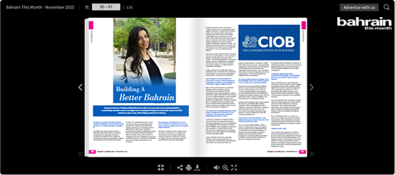 《巴林月刊》11月刊刊登了对英国特许建造学会(CIOB)巴林委员会主席莉娜・赛义德的专访