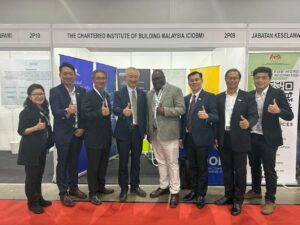 2025年10月28至30日,第 27 届国际建筑周(ICW)暨第三届马来西亚国际建筑展(BuildXpo)在马来西亚吉隆坡国际贸易与展览中心(MITEC)举办,CIOB作为展会的合作伙伴参与了展会相关活动。展会期间,CIOB马来西亚委员会主席 Loi Yew Hua(FCIOB)及前任主席Ho Cheeleong(FCIOB)在展位上与清华大学未来城镇与基础设施研究院院长方东平教授(FCIOB)及新西兰梅西大学James O. B. Rotimi教授(FCIOB)会面交流并合影。
